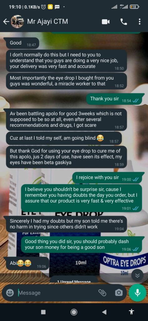 6 months ago, my eyes started swelling up. Before long, it started paining me and getting very red. I called my mum on the phone and told her what i was passing through. She then told me to get this product that it has worked for her. As soon as i started using it, within 2 weeks, my eyes started getting better